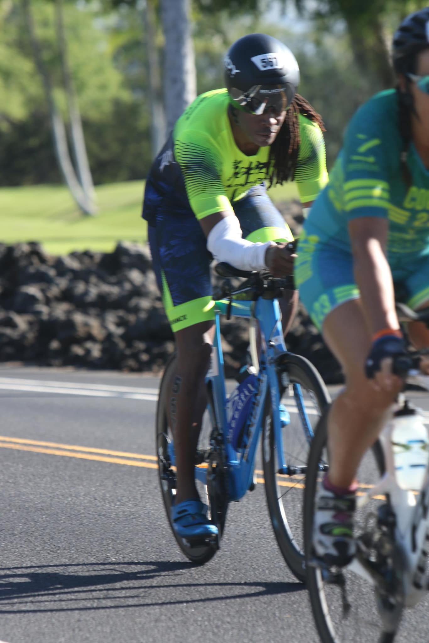 The first 3.5 miles were slight rollers, but everyone knew what awaited them. After a long slight incline, began an 18 mile climb to the town of Hawi. The terrain varied from steep to gentle, but no relief. Always climbing. The closer we got to the peak, the more the ocean wind picked up. A crosswind was expected but it was more of a head wind. I felt great, and zoomed past everyone around me. It was cool to ride a portion of the same course as World Championship. At mile 30 was the turnaround.
