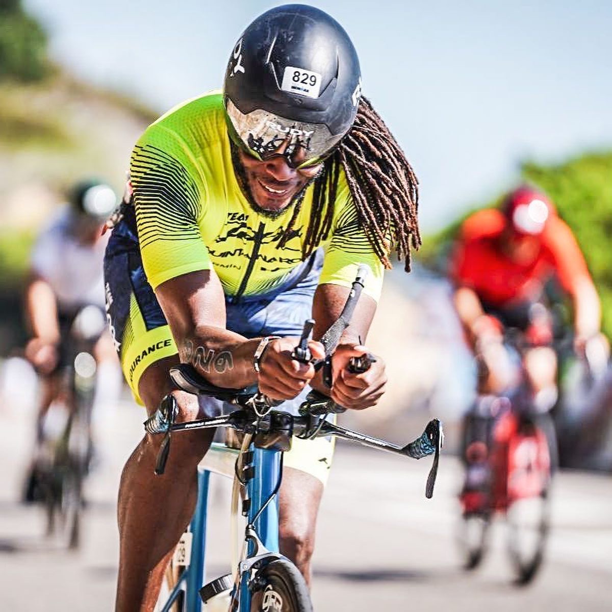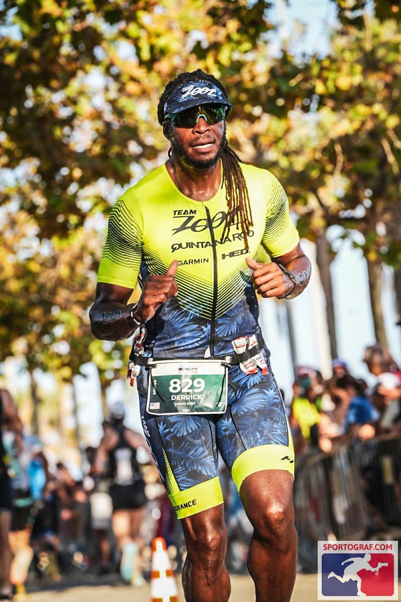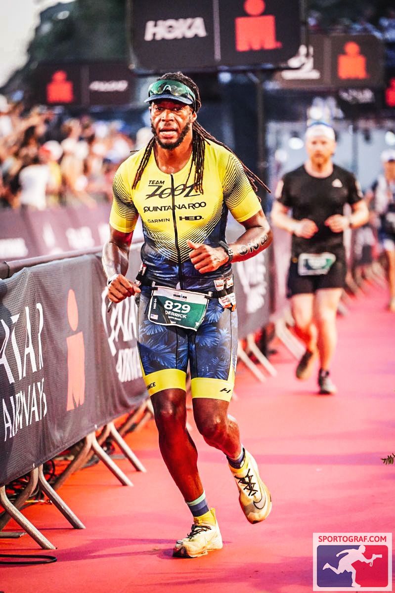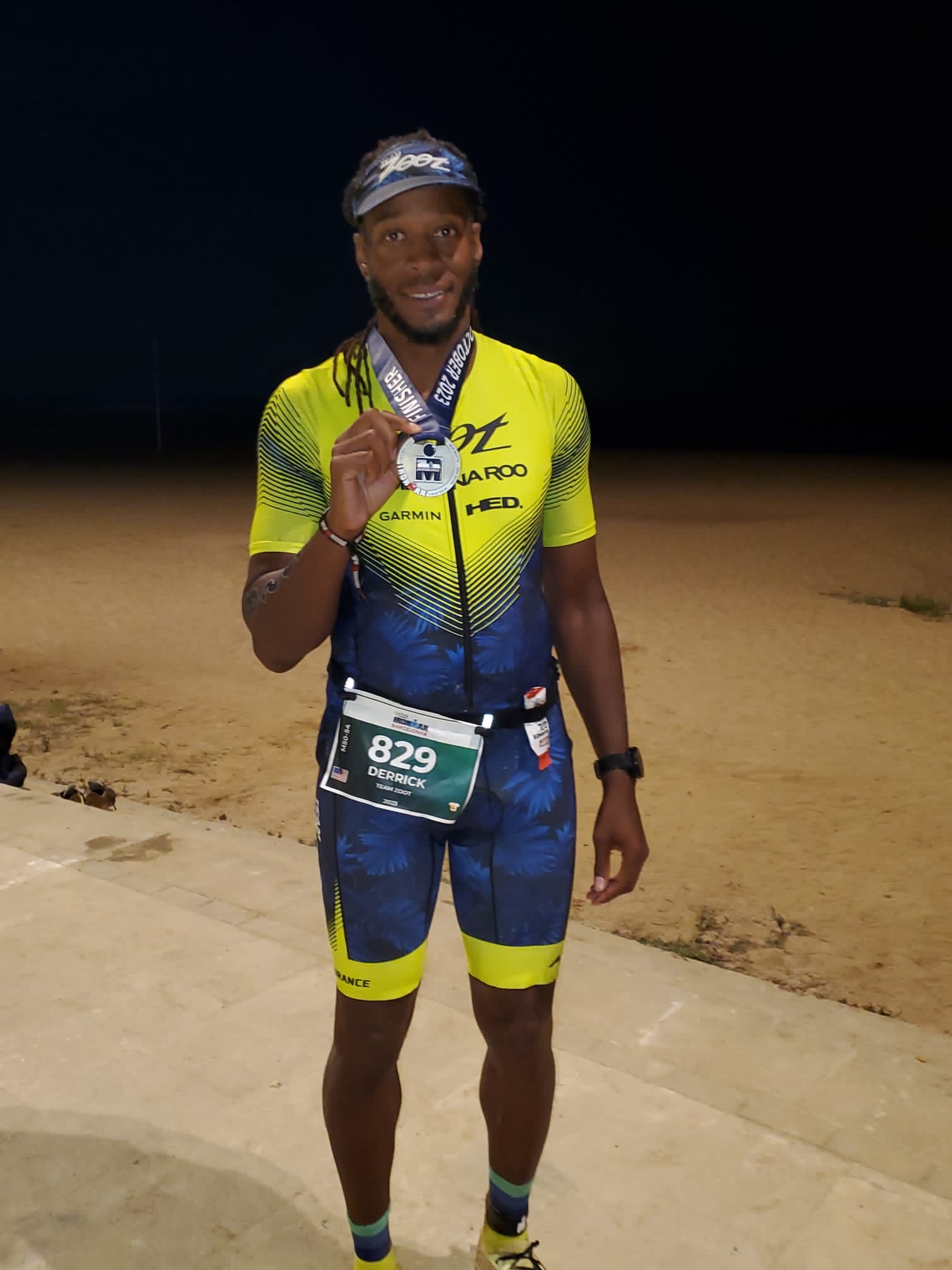 After 3 loops of the dirt road, it was time for me to enjoy the finish line! I thought the grandstands would be empty by the time I made the trip down, but it was packed. The music was loud. The two announcers alternated depending on if the racer was English or Spanish speaking. The excitement was worth everything I endured. I forgot all about my swim, it was time to celebrate. The announcer said what I was looking to hear, “Derrick Britton, from the United States, You Are An Ironman!!!”